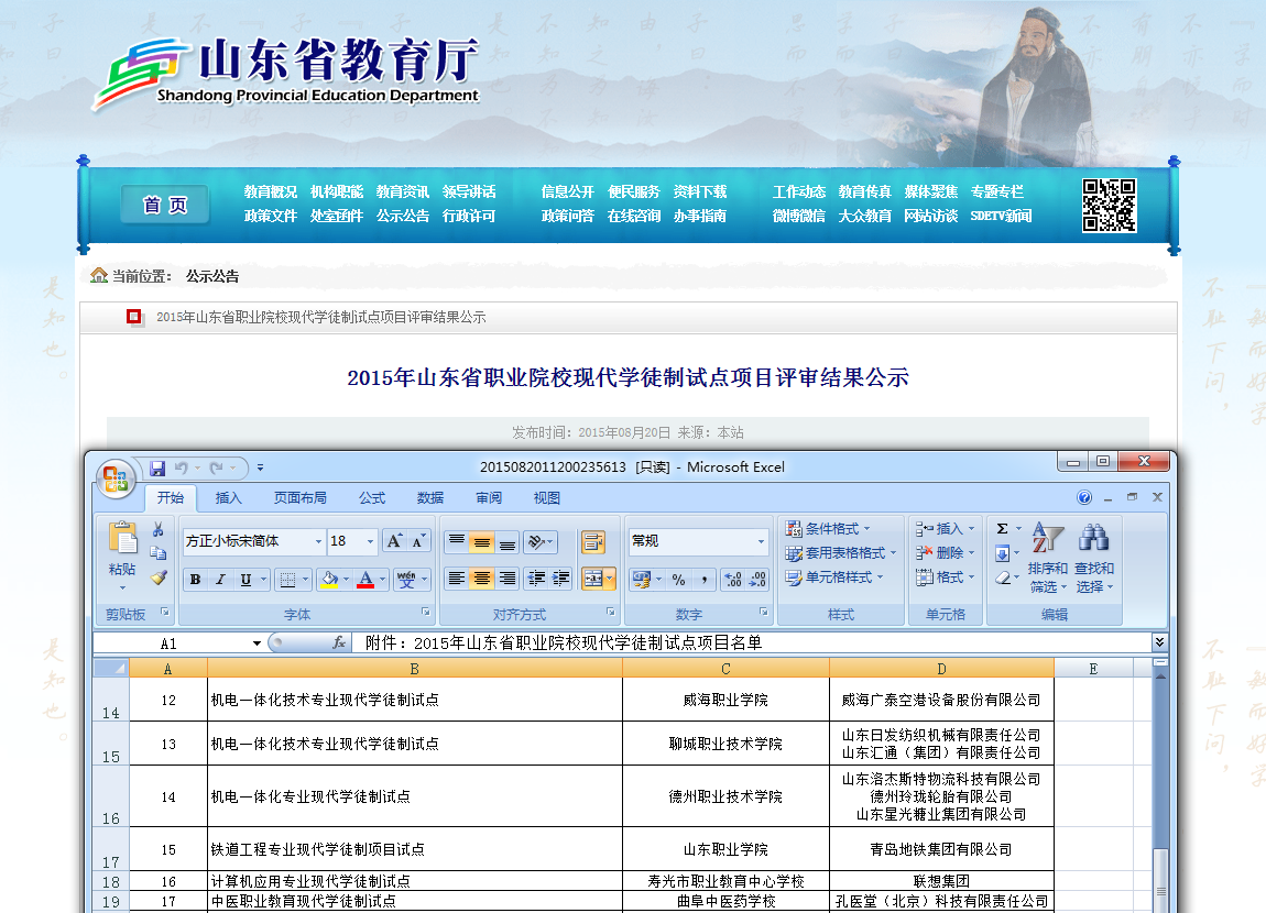 山东省现代学徒制人才培养试点项目