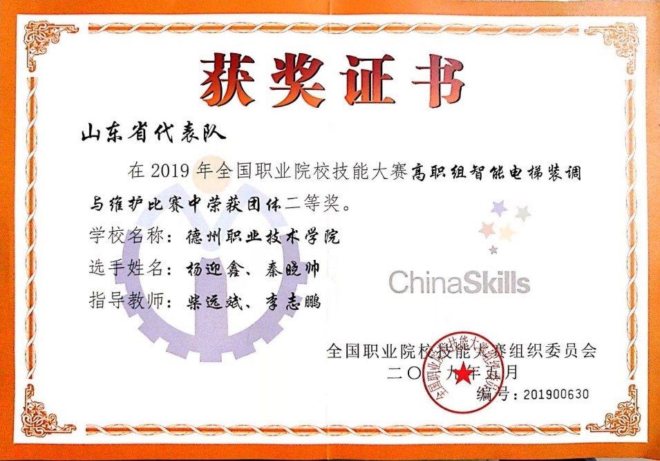 2019年全国职业院校技能大赛(高职组)“智能电梯装调与维护”赛项-国家级二等奖